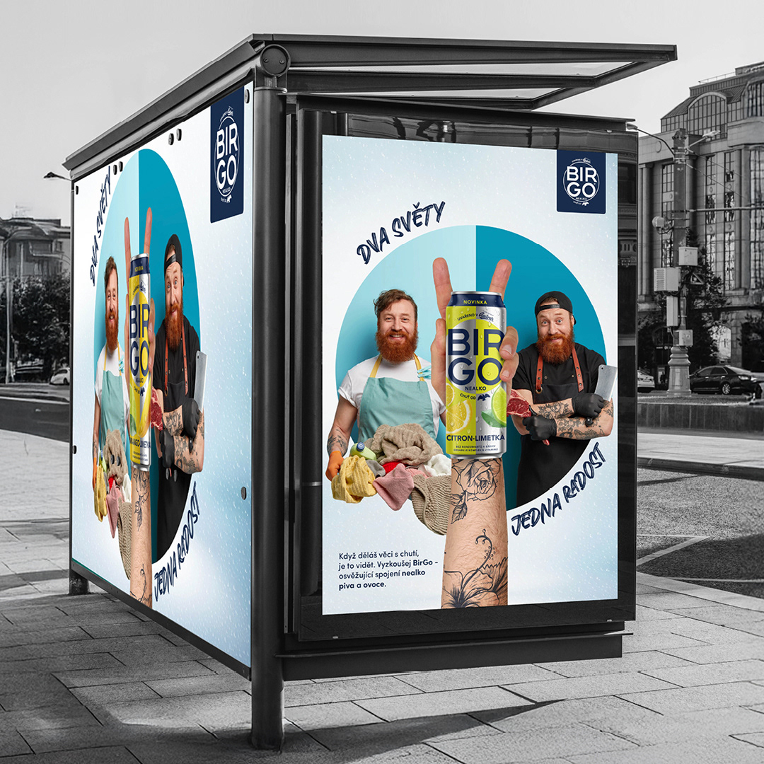 Měl jsem tu možnost se spolupodílet, od vzniku značky BirGo, na finalizaci loga a logo manuálu, následně přípravě prvotních ATL a BTL vizuálů a vizuálů pro ontrade a offtrade nebo sampling.